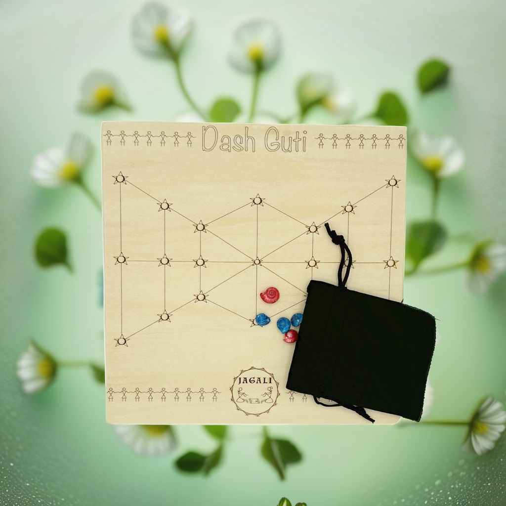 Our crafted Dash Guti set evokes the feel of ancient India. The handcrafted wooden board with natural materials provides an authentic, organic play experience spanning cultures.